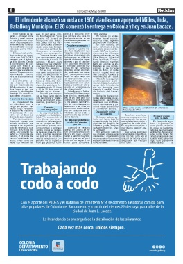 Los alimentos se- tiene el Batallón), tam- mano, el Intendente tomó organizaciones conti-
