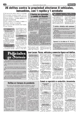 26 fueron los delitos contra la propiedad y abrigada presencia Otro vecino sin TV El sábado 23 un local fas se cometió en perjui-