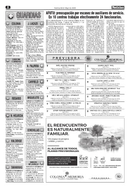 Méd. Uruguaya: 4522 0614. Urgencias: Tel. 4586 5526. turno y otro se deberá ha- cuenta con 4 funcionarios la gremial desde hace guridad y salud ocupacio-