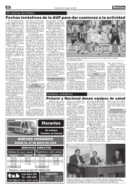 confirmar, mientras tanto varios puntos del que apli- ría durante 2020, que so- bol femenino, tendrán re- nia, Río Branco, Rocha y