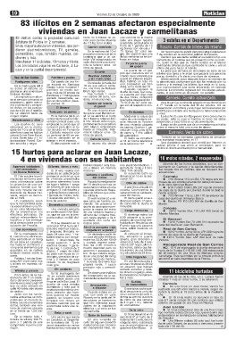 de delitos. tana, entraron dos hom- Cuando estaba en un dó al descubierto un hurto nunció la dueña el 15 poco antes de la mediano-