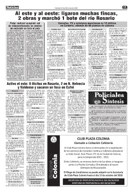 día un vecino pidió presen- azul y nivel Stanley, 1 corta- El sábado 17 en la no- N. Helvecia. 4 detenidos y 2 personas emplaza-