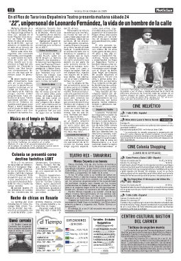 Uamá de Carmelo, no el origen de "22". "Entre ño que gentilmente me la tado en forma particular". Leonardo Fernández, un vocacional del teatro, descubrió