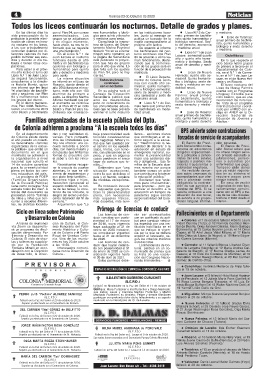 Liceo N.º 1 de Juan Laca- para sexto. cierres.” Helvecia: cuarto año se- lo, en el N.º 1 de Juan La-