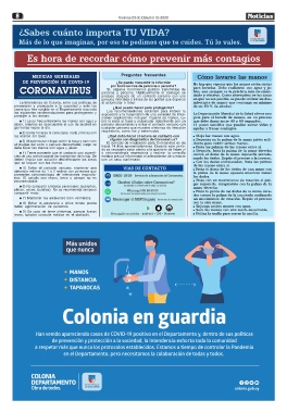 La Intendencia de Colonia, entre sus políticas de al estornudar o toser. infectante de manos que contenga un mínimo