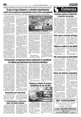 rritorial de Colonia, desde zonas rurales donde ac- hacer es que un plan de no lo somete a considera- zará un taller vegano. Informes e inscripcio-