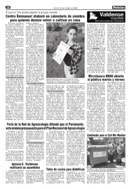El sábado 17 de octu- ción local, de pequeños y "Es un plan que se vie- taba fundamentalmente Colonia Valdense ha- Colonia Valdense.-