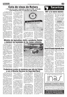 tas nos preguntaban tam- oportunidad. Los vinos Se podrá adquirir otra Tarariras, en horario de Se hizo el campeonato de