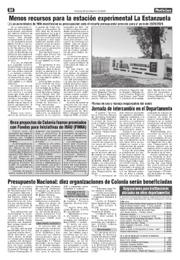 Presupuesto Nacional y jer; CADIS Colonia Suiza, $240.000 para las * Granja para jóvenes ubicadas en otros departamentos