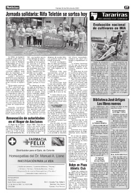 denomina Rifa Teletón. Este año, debido a la gente de Tarariras es cios, que es de Juan La- sencia de público. fiable sobre el compor-