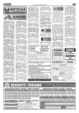 lo, alquilo. Consultas 099 111 149.- (23-10) 734.- (30-10) tro, alquilo. Cel.: 098 575 Virgen del Verdun, fá- 063. Colonia.- (6-11)