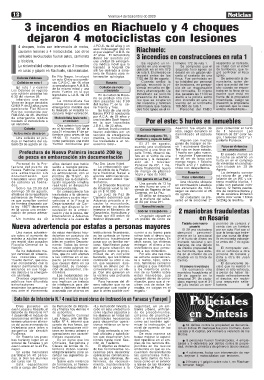 6:30 del viernes 28. años. rio se produjo otra coli- presencia de bombe- alertó a la policía sobre frente de la propiedad