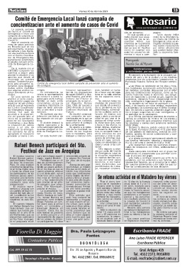 de Jazz de Arequipa, deo de aproximadamen- Perú. positivos, o por haber quienes han fallecido, por el personal de la salud,