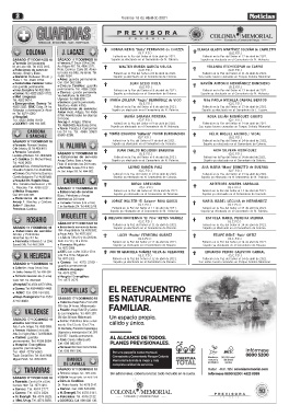 SÁBADO 17 Y DOMINGO 18 Estación de servicio de turno: Sepelio ya efectuado en el Cementerio de Rosario. Sepelio ya efectuado en el Cementerio de Colonia.