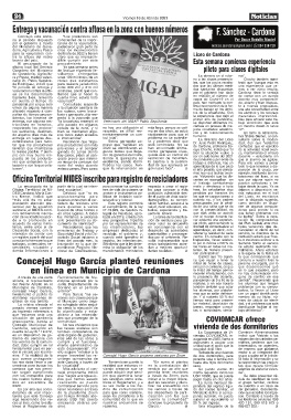 DES Cardona, María Cas- Destacó que “no es anoten e instrumentar po- población vulnerable des- perdidos por horarios en rias máquinas en el hall