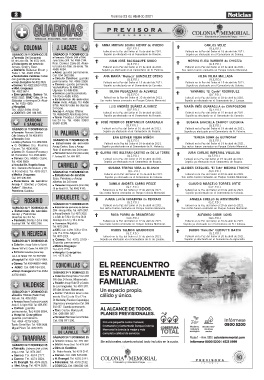 SÁBADO 24 Y DOMINGO 25 Estación de servicio de turno: Sus restos fueron cremados en Parque Colonia Memorial. Sus restos fueron cremados en Parque Colonia Memorial.