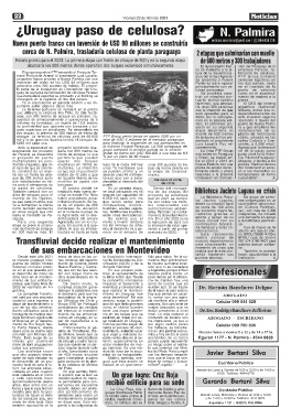 cerca de N. Palmira, trasladaría celulosa de planta paraguaya 2 etapas que culminarían con muelle