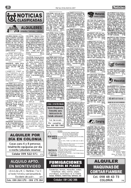 liarialia. com.uy (30-4) COLONIA, Apartamento a ze.- (7-5) 4552 3255 o 4552 1456. Cel