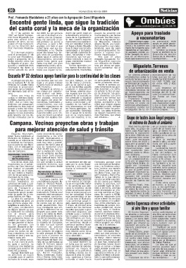 Ombúes de Lavalle había durante marzo en el anexo pero es de valorar el apo- Desde la semana pa- cargo de la firma Fode- metros.