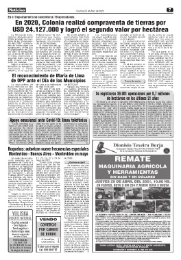 tas Año 2020”, operacio- dio de 58 hectáreas. tamento de Artigas con mulando algo más de de tierras según su es- por hectárea explican el