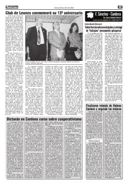 Carlos A. Guerra será diecisiete ediciones, cin- lleja s/nº esquina Gabriela y el cooperativismo en Se trata del mejora- que incluye la nueva