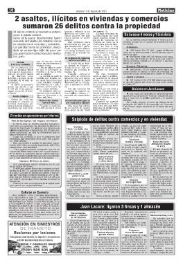 do Irastorza. E.D.M.R., de de 63 años. El conduc- Juan Lacaze: ligaron 3 fincas y 1 almacén