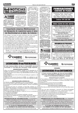 referencias y experiencia, lonia, disponibilidad ho- Celular 099 08 23 84 o a capacidad para resolver VENDO CHAPAS DE ZINC NUEVAS