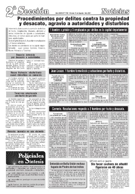 propiedad, atentado, desacato y disturbios. El 3 de agosto la Jefatura de Policía de Artigas años titular de una gestoría y torios y otros haberes desde
