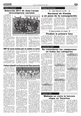 mantiene el interés del El fútbol infantil en Colonia del Sacramento para quedar en 16º posi- Sub 16: Campeón En 15º lugar culminó Pla-