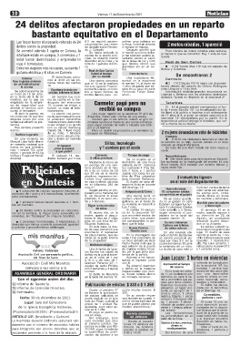 sin fines de lucro ra, en el vidrio de 1 por Autorizó a los funcio- Juan Lacaze: 3 hurtos en viviendas