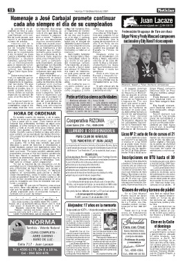 Juan Lacaze - D. Acosta 401 esq. Gardel - dom. H. 10:30 Alejandro: 17 años en la memoria tarse por el Cel. 098 307 Las inscripciones se
