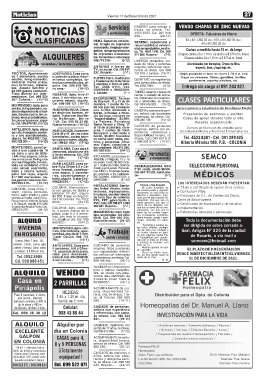 nel Arroyo e/ Vicente García 2570.- (24-12) PPL, PPT, galvanizado o Jesucristo. Vos que sos un Carné de Salud vigente.