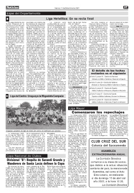 ñarol de Ombúes de La- sido 2 a 0 favorable a los mientras que Peñarol de Centro, Tarariras, Helvé-