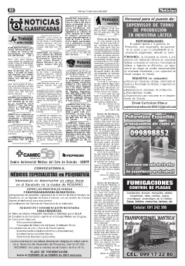 SEÑORA para cuidado de ni- con años de experiencia y re- Rosario y Aparicio Saravia cina y en Semanario NOTI- mento de Colonia.