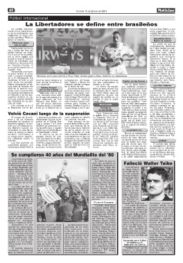 Al margen de la polé- 1, derrota en el clásico con turno, jugando el salteño su segundo título en la descollante de Pelé. La tos. Por el Brasileirao se