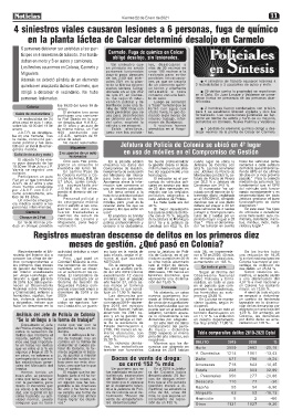19:00 en 18 de Julio y J.P. gonizó un siniestro al ofrecimos los datos del la gestión desde el desa- Jefatura de Colonia con necientes a cada Jefatura