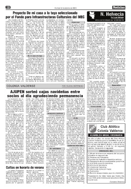 la cuota social al día". la Asociación contenían gente; también la pedicu- cía señala: "nos mante- Colonia Valdense