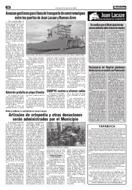 tante que Juan Lacaze re- tengan acceso a la playa, La primera junta direc- Werner. Juan Lacaze - D. Acosta 401 esq. Gardel - dom. H. 10:30