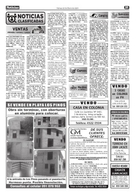 COLONIA, Apto. sobre Ata- servicios, vendo USD ================= ría, bajo. Voy a domicilio. ga, puntal 0.90 m. USD Teléfono: 4554 6382. Ce-