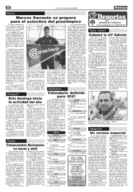 sábado 20 y domingo 21 con José Luis Mengen y 23 y 23: Nacional de los nadadores. ración máxima de 40 mi-