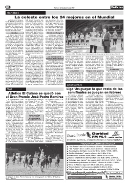 va fue el más rápido. Hipódromo Real María Prado. Aguada participe de la la Liga Uruguaya de Bás- partir del jueves 29 de