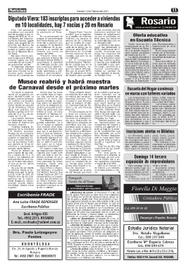 El legislador expresó que cuenta el departa- ciudad de Rosario, se- de luego, contribuirá a ñana, para 1º, 2º y 3º y la es el pase que acredite