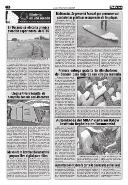 Durazno, cuenta con una represa y canales de distribución, se rios que cuando empezó la tapa y colocarlos en el congela- menzó su contribución con