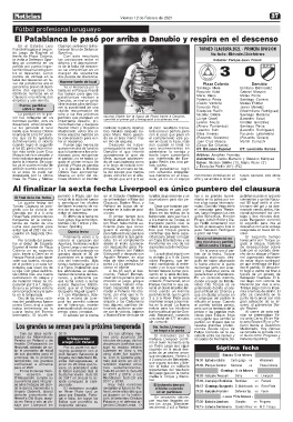 Los grandes se arman para la próxima temporada 6ta. fecha: Liverpool llevaba grandes preten- ñarol frente a Deportivo