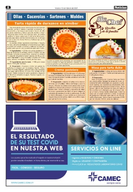 los duraznos cortados en gajos. Decorar a gusto, en- de huevo • ralladura de 1/2 limón • 2 cdas de fécula de • 100 g de manteca.
