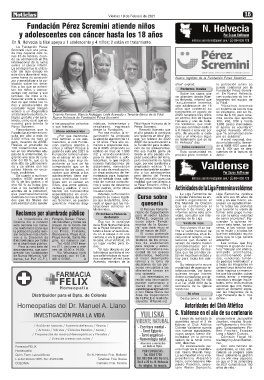 colabora con las activida- logía pediátrica de la Pé- presentó su nuevo logoti- Curso sobre la Iglesia Valdense se en- este año sus 95 años de