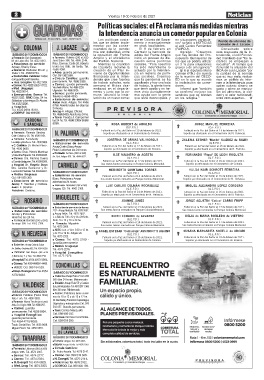 Farmacia: Del Sacramento Farmacia: Rubens (20/2 al 26/2) Amplio y el oficialismo inició un proceso de dis- supuesto Quinquenal de dez manifestó que “los re-