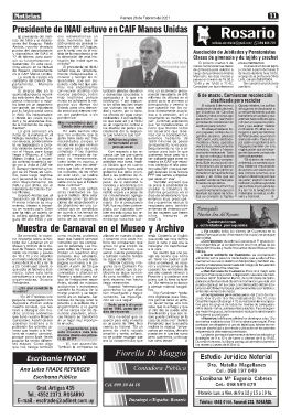 pequeña investigación con letristas de murga, tener la ción se va a seguir”. nos permite tener un archi- Casa Parroquial (Ituzaingó 417) se realizarán las inscripcio-