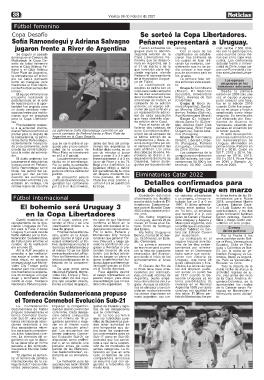 Nacional y Peñarol quisie- mente a la fase de grupos, drá como esperaban. guay. Aunque la estadís- meterse en el Mundial oportunidad los rivales