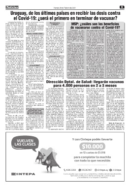 educación, policías, aéreas, aviones y helicóp- La Dirección Departa- dos turnos en Colonia y tores serían unas 4.000 se vacune. Instamos a que